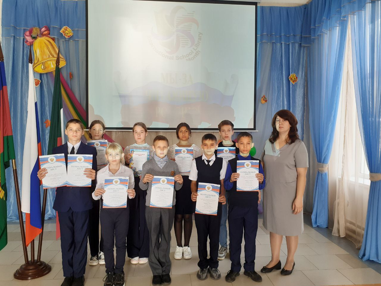На торжественной линейке, посвященной дню школьных библиотек, активные учащиеся были отмечены похвальными листами.